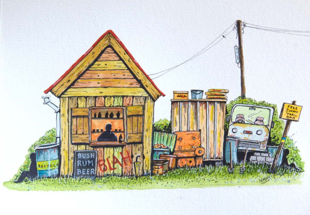 Outside Edge is the name I’ve given to my first, evolving collection of art works. It’s a series of ink and watercolour vignettes that are island-inspired, yet intentionally off-kilter.